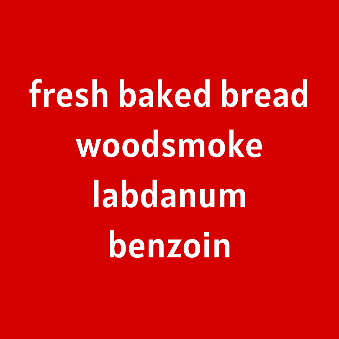 notes: fresh baked bread, woodsmoke, labdanum, benzoin